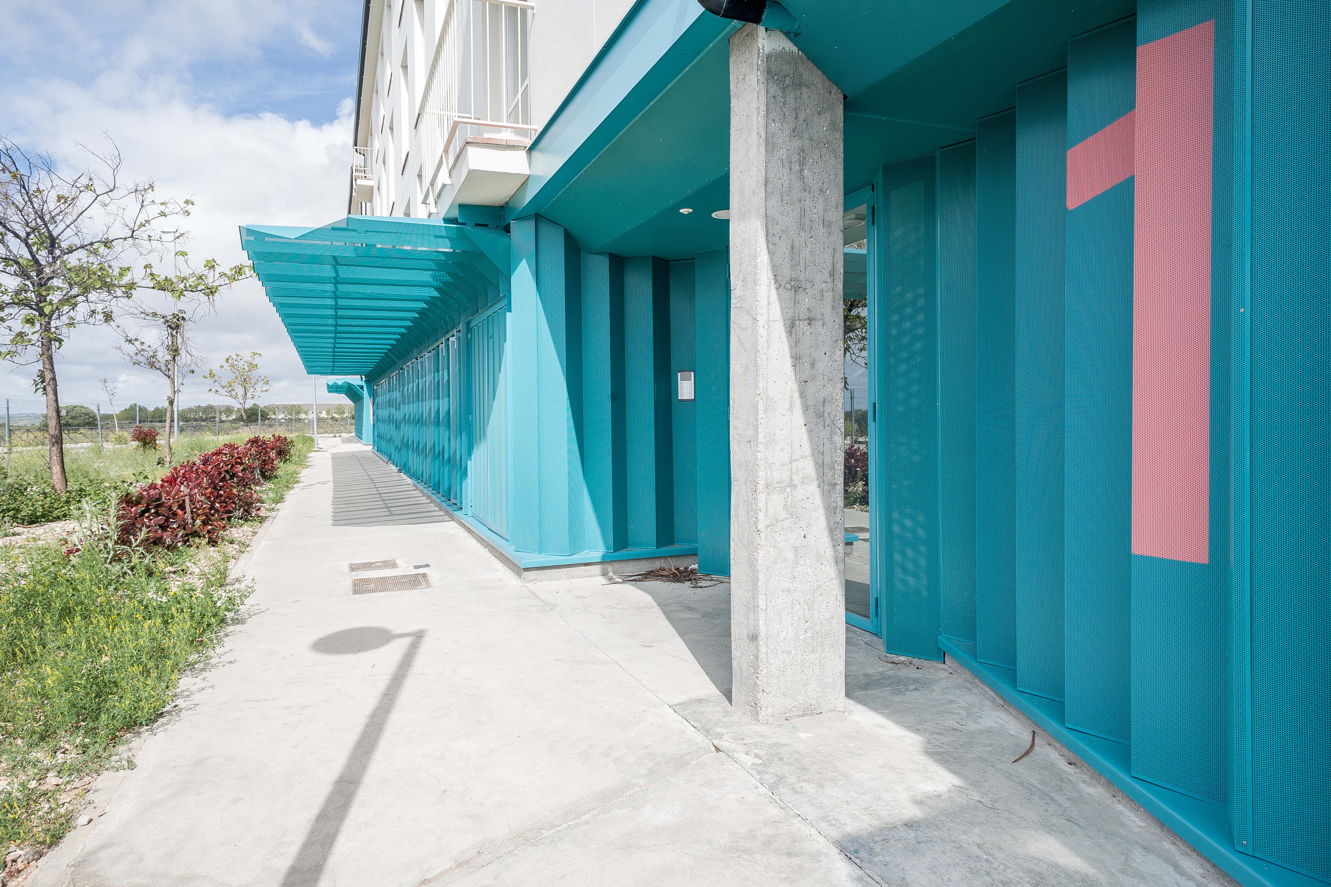 Rehabilitation of 124 dwellings in structural critical condition. A intervention and structural consolidation is proposed in addition to the improvement of the ground floors and common areas. Through a piece that folds up forming a permeable enclosure we achieve better quality public spaces, eliminate the negative factor of the old aspect of the houses and promote an optimistic and fresh character. The permeability of the enclosure is based on: allowing the lower floors to have adequate ventilation and propitiate visuals between leisure areas. The enclosure intensifies the use of public space creating living and shadow areas, etc.